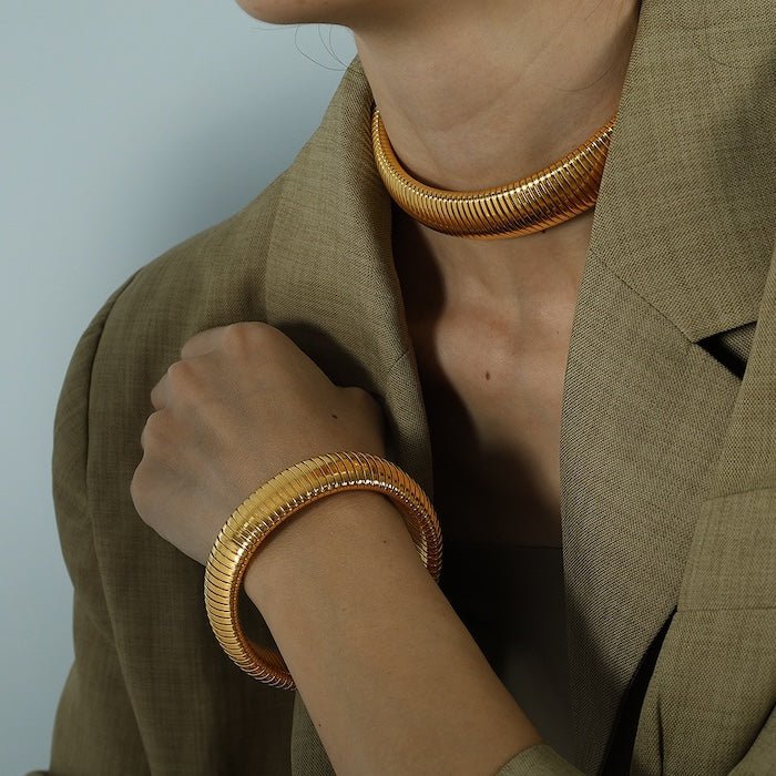 Chunky, minimalist jewelry set - bracelet & choker in gold or silver