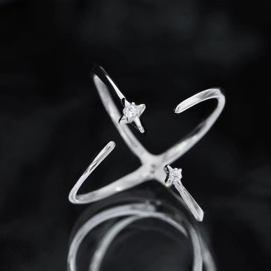 The elegant star ring combines minimalist design with cosmic symbolism. Crafted from high-quality brass with a silver finish, it captivates with its double-sided shape, reminiscent of a star gliding through the galaxy.