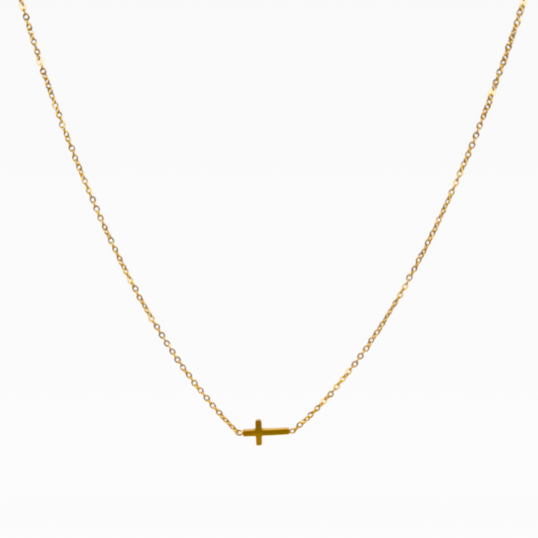 vergoldete Edelstahlhalskette, mit Kreuzanhänger, waagerecht