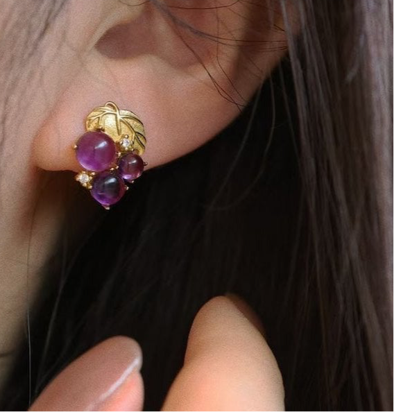 Amethyst-Traubenohrringe in Gold-Vermeil. Verspielt, elegant und farbintensiv – ein charmantes Accessoire mit natürlicher Ausstrahlung.