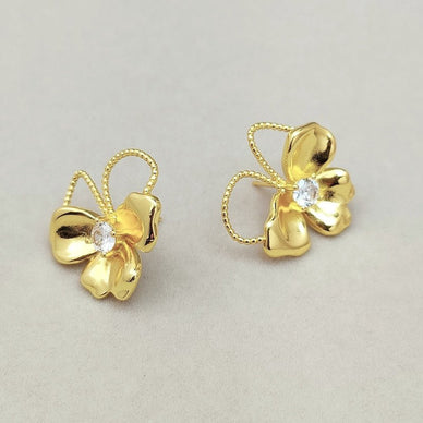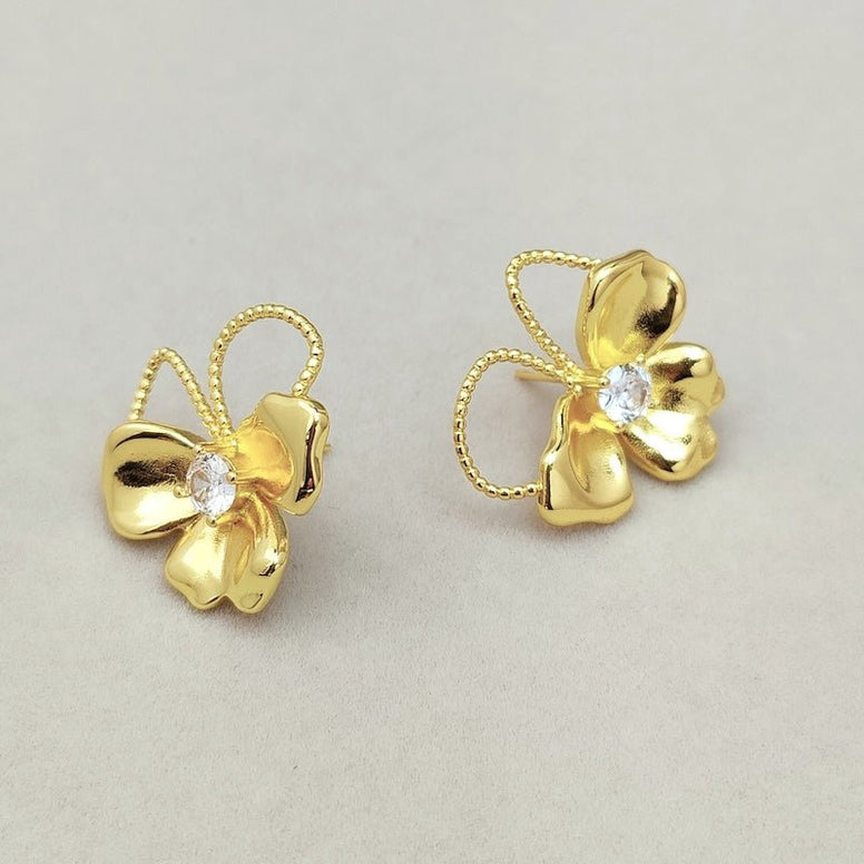 Mit zwei hohlen Blütenblättern und drei massiven Blütenblättern fangen diese Ohrstecker die zarte Schönheit von Blumen im Vintage-Stil ein. Ihr einzigartiges Design macht sie zu einem herausragenden Stück, das jedem Outfit einen Hauch von Eleganz und Charme verleiht. Diese aus Messing gefertigten und vergoldeten Ohrstecker messen 2,5 x 2,5 cm und haben damit die ideale Größe für den täglichen Gebrauch. Erleben Sie die Mischung aus klassischem und modernem Design mit diesen wunderschön gefertigten Blumenohrringen.