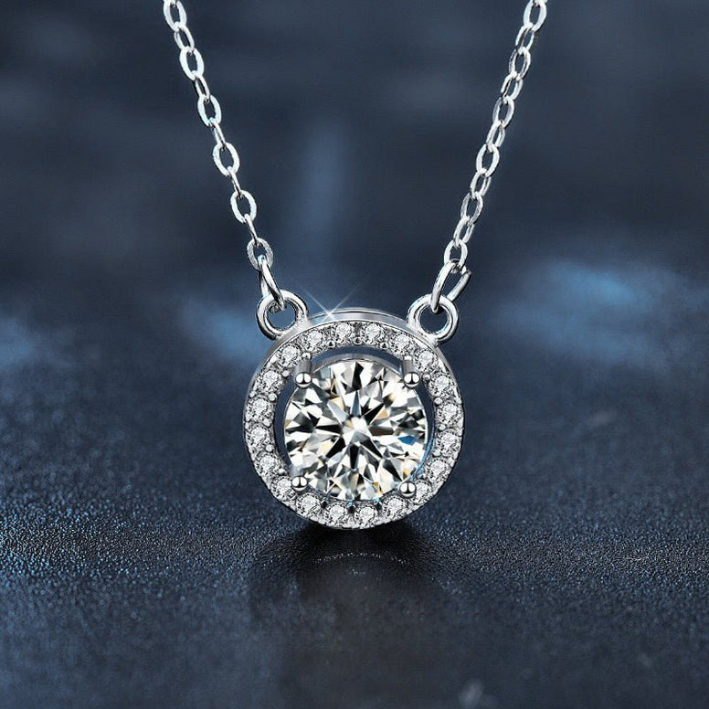Edle Halskette mit funkelndem Halo-Design, das den zentralen Moissanit perfekt zur Geltung bringt. Moissanit strahlt intensiver als Diamanten, ist nachhaltig im Labor gefertigt und eine erschwingliche Alternative. Gefasst in 925er Sterling Silber mit verstellbarer Kette (40+5 cm) für angenehmen Tragekomfort. Ein zeitloses Schmuckstück – perfekt als Geschenk zu Geburtstagen, Jubiläen oder besonderen Anlässen.