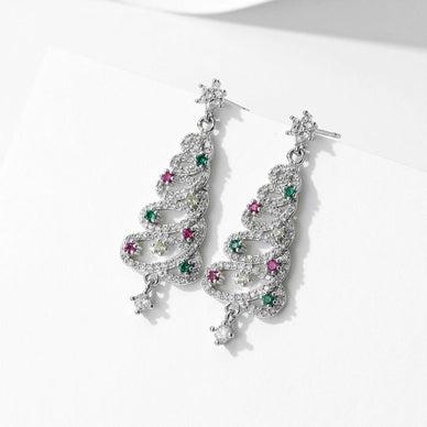 Diese eleganten, versilberten Messing Ohrringe sind perfekt für die Festtage. Ein Schneeflockenstein ziert die Oberseite, während das Christbaum Design durch leuchtend grüne und rosa Steine hervorgehoben wird. Der gesamte Ohrring ist mit funkelndem transparentem Zirkonia besetzt und sorgt für einen superglänzenden und raffinierten Party Look.