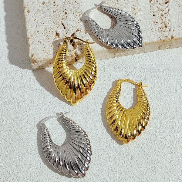 Die geometrische Form und die Linienmuster, die die Reifenoberfläche zieren, schaffen ein auffälliges Design, das die Essenz des Minimalismus verkörpert. Die Ohrringnadel besteht aus 925er Silber, das für seine Qualität und seinen Komfort bekannt ist. Erhältlich in zwei klassischen Farben, Gold und Silber. Mit den Maßen 3 x 2 cm schaffen sie die perfekte Balance zwischen Subtilität und Stil. Das Hauptmaterial dieser Ohrringe ist Messing, das kunstvoll mit Gold oder Silber plattiert wird, um ein langlebiges und luxuriöses Finish zu gewährleisten.