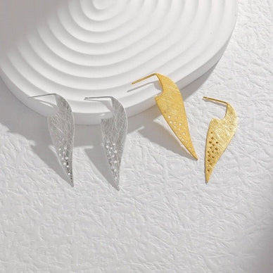 Jeder Ohrring zeigt ein Blattdesign mit mattierter Oberfläche. Die Blattform wird durch kleine hohle Kreise auf der Oberfläche ergänzt, die an durch Bäume fallendes Sonnenlicht erinnern. Diese Ohrhänger passen perfekt zur natürlichen Form des Ohrs. Das einzigartige Design und die detaillierte Handwerkskunst machen sie zu einem herausragenden Accessoire, das jedem Ensemble einen Hauch von Eleganz verleiht. Diese aus Gold-Vermeil und Sterlingsilber gefertigten Ohrringe bieten ein luxuriöses Finish, das ihre Schönheit unterstreicht. Mit den Maßen 4,2 x 1,2 cm schaffen sie die perfekte Balance zwischen Aussagekraft und tragbarer Eleganz.
