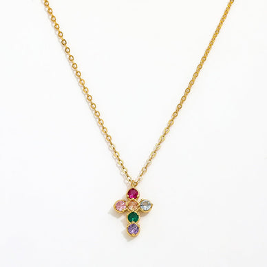 vergoldete Sterling Silberkette, mit farbigem Zirkonen, im Kreuzstil