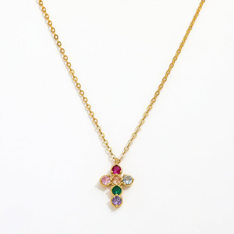 Halskette Salome - Kreuz mit bunten Steinen.