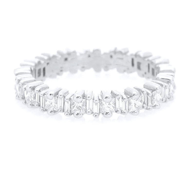 Silberring, mit eckigen aneinander gereihten Zirkoniasteinen, rhodiniert
